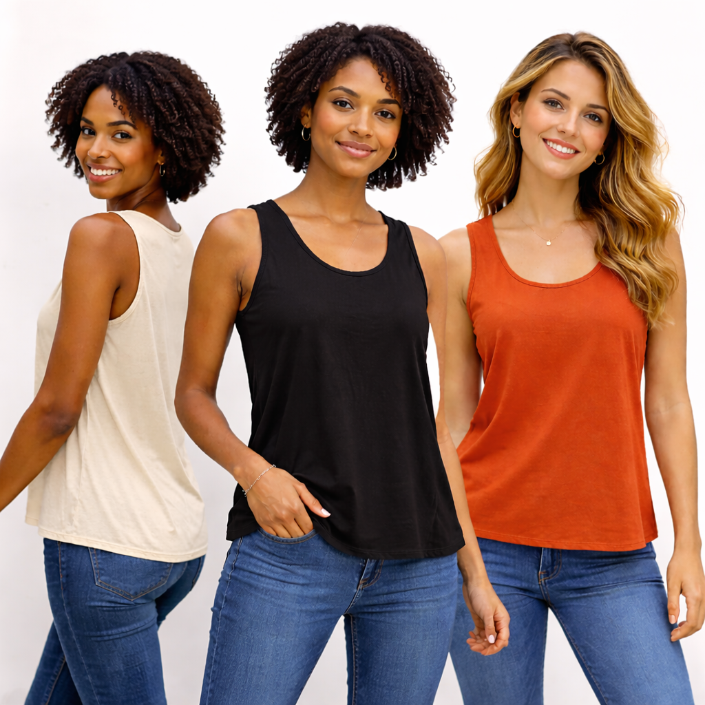 Regata Feminina Básica – Gola U, Modelagem Solta