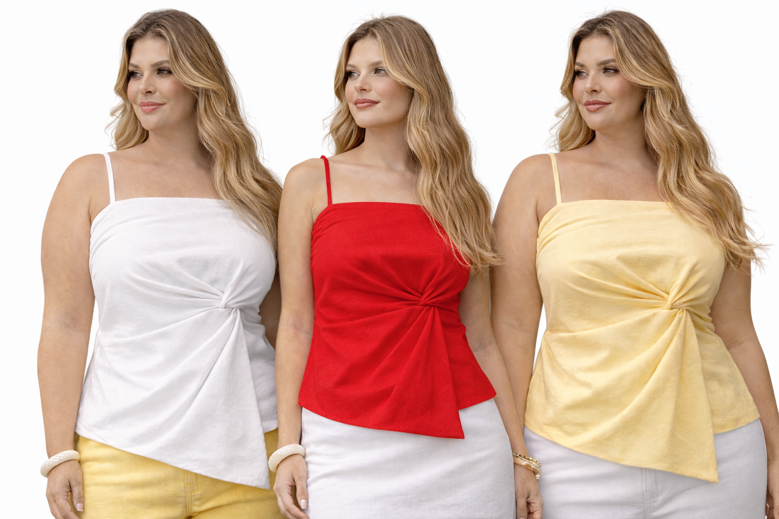 Regata Feminina Torcida Frontal em Viscose Elegante Casual,