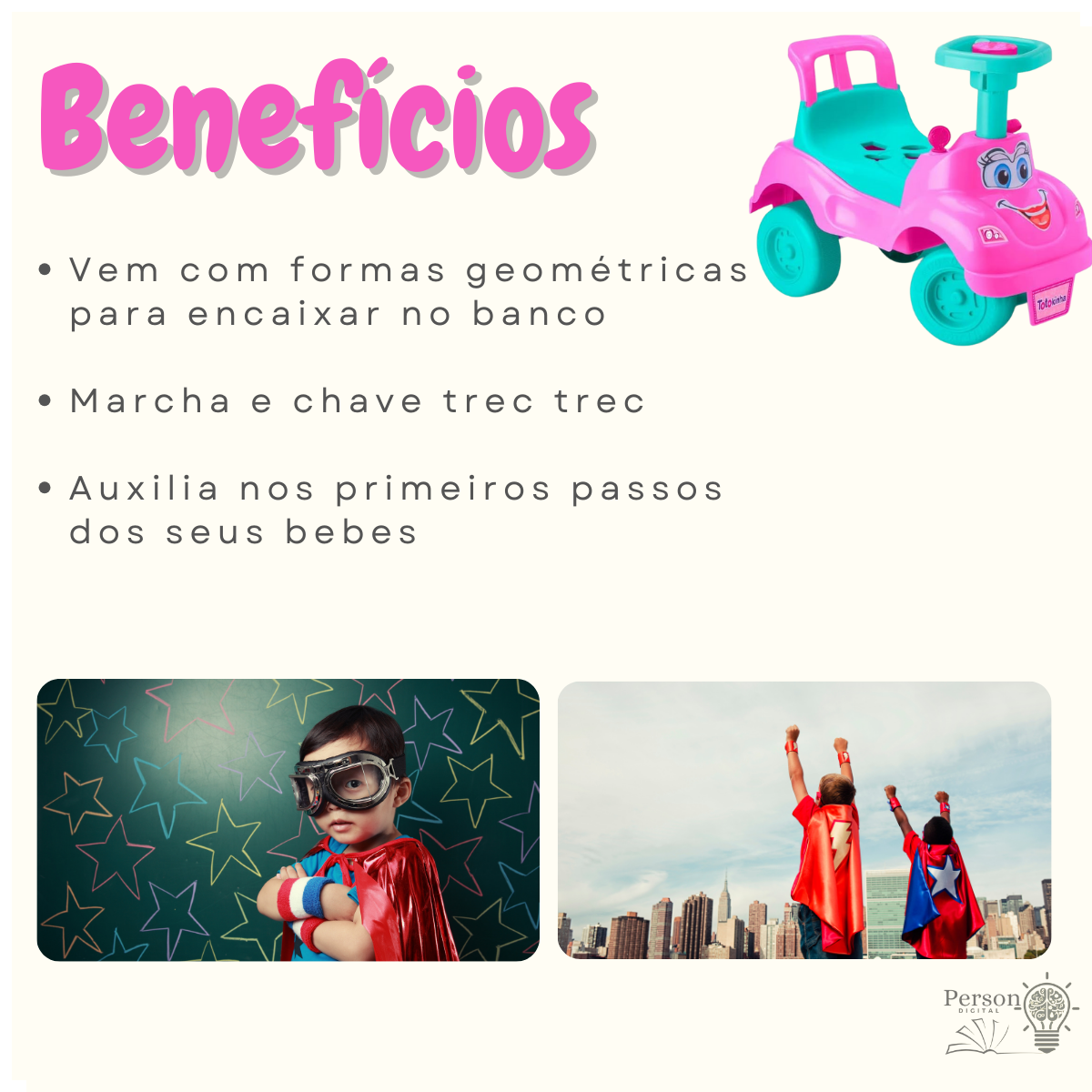 Desenvolvido para crianças na fase da primeira infância ela possui funções didáticas que auxiliam no desenvolvimento aprendizado e nos primeiros passos É nessa fase que a criança mais precisa de estímulos para desenvolver suas aptidões